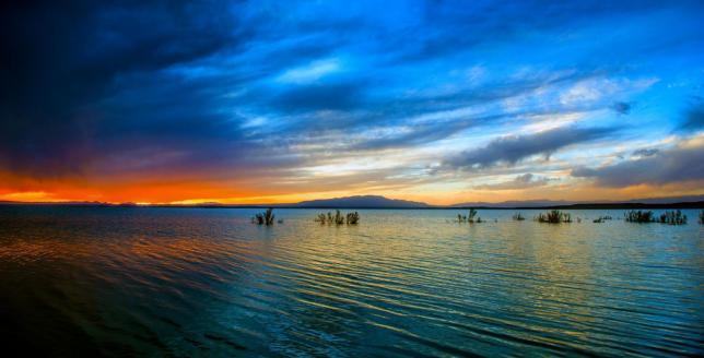 “克鲁克”是蒙古语,意思是“多草的芨芨滩、水草茂美的地方”。她位于柴达木盆地的东部,属于微咸性淡水湖,水色清澈、湖面平静,景色绮丽旖旎。