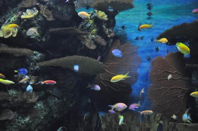 上海海洋水族馆是世界上最大的人造海水水族馆之一,有一条长达155米的海底隧道。整个水族馆的设计十分巧妙:从中国的长江出发,穿越亚马逊丛林,来到南美洲寻找神奇的电鳗;随后与澳洲的锯鳐隔水相望;又走过东南亚看缤纷多彩的小鱼群,紧接着穿过冷水区,海豹在你身边随行伴舞;最后在海岸区欣赏水母如梦如幻的曼妙舞姿。