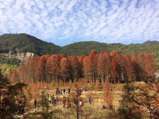 在临海市东塍镇桐坑村一个深深的山坳里,隐藏着一片让人叹为观止的红杉林。无数多的摄影爱好者都对那枫叶般火红的杉树林着了迷,想通过镜头将其永久的捕捉下来。走进山坳,迎着旭日阳光,探寻在秘境幽深的深山中。旁边峡谷溪流潺潺,芦苇随风飘扬,宛如游走在一幅静止的美丽花卷中,想想这样的场景就十分的美好!