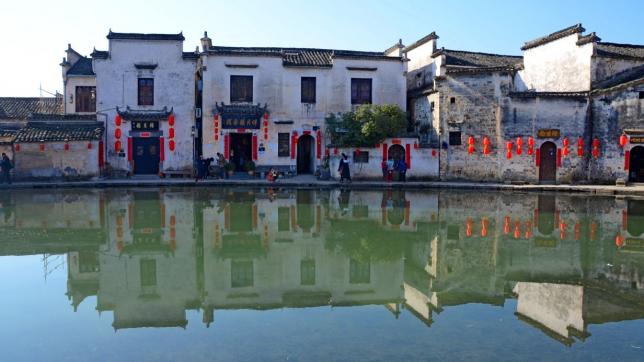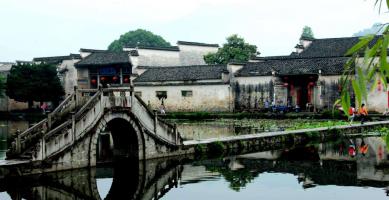 宏村,古取宏广发达之意,称为弘村,位于安徽省黄山西南麓,距黟县县城11公里,是古黟桃花源里一座奇特的牛形古村落。地理坐标:东经117°38′,北纬30°11′,村落面积19.11公顷,宏村始建于南宋绍兴年间(公元1131——1162年),距今约有900年的历史。宏村最早称为“弘村”,据《汪氏族谱》记载,当时因“扩而成太乙象,故而美曰弘村”,清乾隆年间更为宏村。