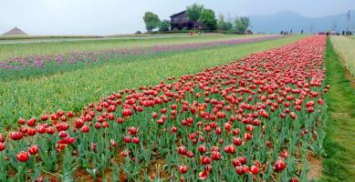 巢湖郁金香高地集占地约1000亩,核心景点是郁金香基地,种植面积约50亩。郁金香的盛花期在4月份,薰衣草、鸢尾在六七月份绽放。