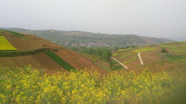 鲍旗寨沟壑林立,村边有小河缓缓流过,山峦起伏于田间地头,村落分布在塬下。绿的田、棕的土,煞是好看,貌似刻意颜色搭配。块块田地随着起伏的山峦,在蓝天白云的衬托下,把这片大自然演绎的如此“国画”。