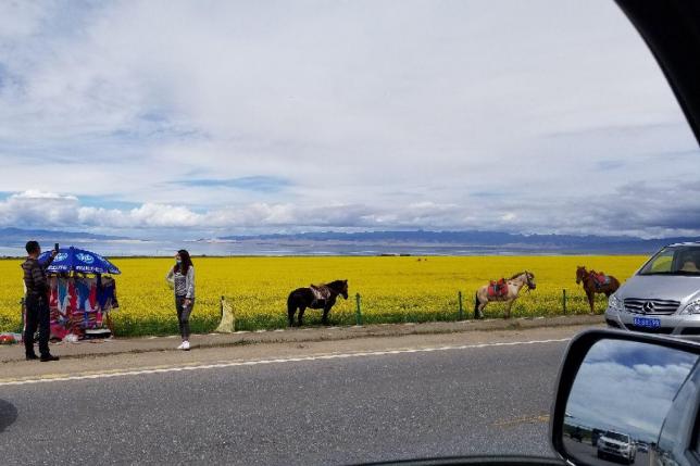 青海湖位于青藏高原东北部,沿途平均海拔2800米,蒙语“库库诺尔”,意为“青色的湖”。