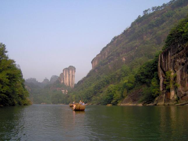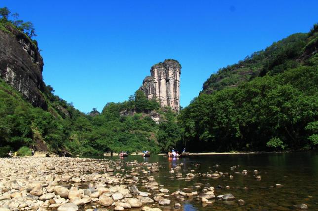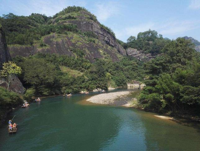 九曲溪从西向东,蜿蜒自如,可谓曲曲含异趣,湾湾藏佳景,其中“四曲”就是《西游记》拍摄小白龙出世的地方。每曲自成意境,浅成滩,深成潭。游览九曲山水,乘竹筏从星村顺流而下,或从武夷宫拾阶而上,只半天时间,可览尽山光水色,意趣无穷。