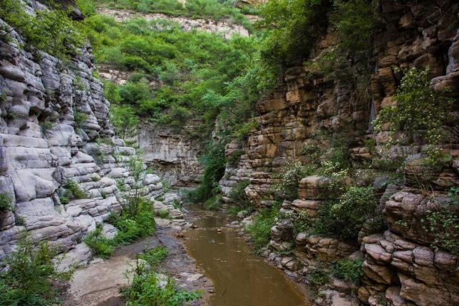 一线天景区位于武夷山群峰南端之二曲溪南面的一个幽邃的峡谷里,又称一字天。该处有一座巨岩,宛若城廓,名甫灵岩。岩倾斜而出,覆盖三个毗邻的山洞,其顶有裂隙100余丈,宽不及1米。