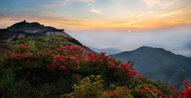 金铙山原名大历山,又名太弋山,位于福建省泰宁县和建宁县两县境内,海拔1858米,在我国东南仅次于台湾玉山和武夷山主峰黄岗山,素有“秀起东南第一巅”之美称。因闽越王无诸校猎于此,遗失金钹一面而得此美名。金铙山绵亘300余里,共有84峰,峰峰险峻,主峰白石顶把山分为东西二麓,东麓多为悬崖绝壁,西麓多为奇峰峻岭。有“八闽第一峰”之称,海拔1858米。该景区内建有福建省海拔最高,长度最长(2.1公里)的金铙山客运索道,海拔最高的时空隧道,福建省最有特色的凌空栈道,全国除台湾阿里山外唯一的高山小火车和福建省唯一的高山室外滑雪场。登上主峰,可眺望闽西北的建宁、泰宁、宁化、明溪,福建最大的人工湖金湖,也尽收眼底。