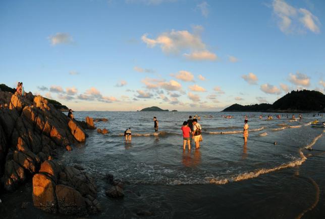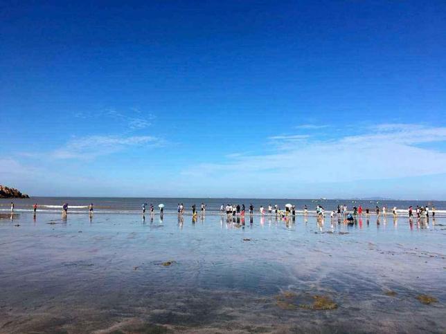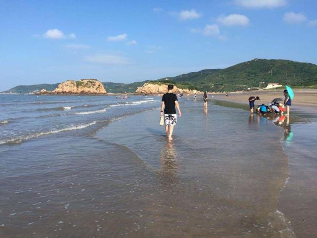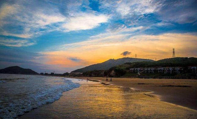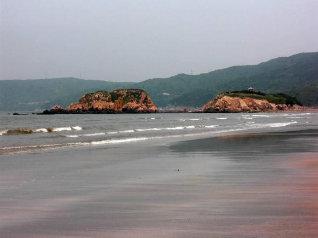 位于象山县城东南,沙滩多达六个,而且滩滩相连,穿成一线,南北长5公里,所以它称为华东地区最大的陆岸沙滩。曲折的港湾、美丽的岛礁和多处岬角、沙滩,以及气势磅礴的海蚀地貌,构成一道美丽而和谐的风景线。沙质细纯柔和,游客既可下海击浪,又可登山观海、听潮。