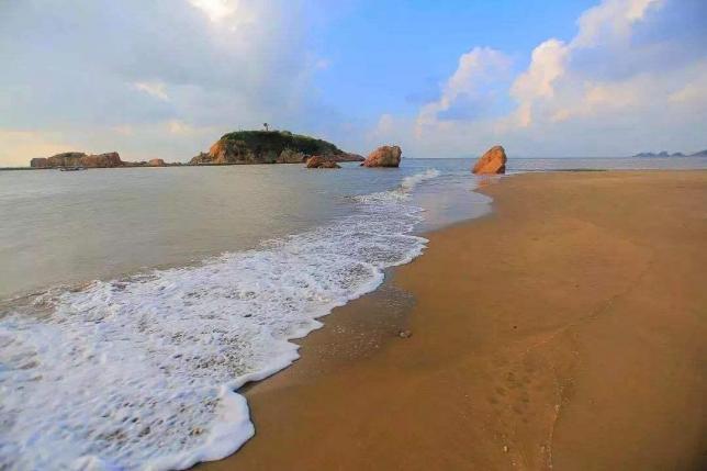 位于我国东南沿海著名渔石浦镇北,是象山开渔节的主会场,全长1800米,沙平如纸,向大海缓缓延伸,沙质细腻,柔如丝绸。沙滩背山面海,极目远眺,海天相接,远处白帆点点,汹涌的波涛一浪高过一浪,令人心胸豁然开朗。北端的半边山上悬崖陡壁、怪石棋布,是欣赏海礁峥嵘景观的好去处。