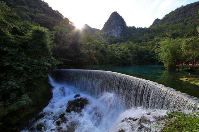 在层峦叠嶂的喀斯特地貌上,覆盖着莽莽苍苍的原始森林,河湖溪瀑纵横交织,风景令人陶醉不已。