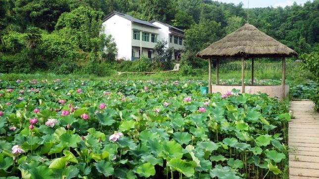 荷花园又名爱莲湖生态湿地公园,园区核心区规划面积3000亩,即生态湿地荷花湖500亩,观赏荷花展示区500亩,种植四季小水果1000亩,商品莲藕1000亩。目前荷花园已经培育了神女姿、西湖红莲、大红袍、赛牡丹、太空骄阳等近100个名贵观赏荷花品和130余种水生植物。园内栽种有金丝垂柳、桂花、鸾树、兰花楹等15000余株绿化树,打造了爱莲广场、荷文化展示馆、大型水车、清水平台、生态雅舍、荷花佳苑、荷仙洞天、爱莲桥、读书亭等23个景点,具有观景、休闲、摄影、娱乐、品茗等功能。