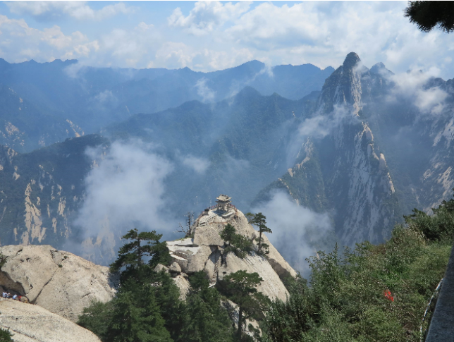 华山,古称“西岳”,是我国著名的五岳之一,海拔2154.9米,位于陕西省西安以东120公里历史文化故地渭南市的华阴市境内,北临坦荡的渭河平原和咆哮的黄河,南依秦岭,是秦岭支脉分水脊的北侧的一座花岗岩山。凭借大自然风云变换的装扮,华山的千姿万态被有声有色的勾画出来,素有“奇险天下第一山”之称。