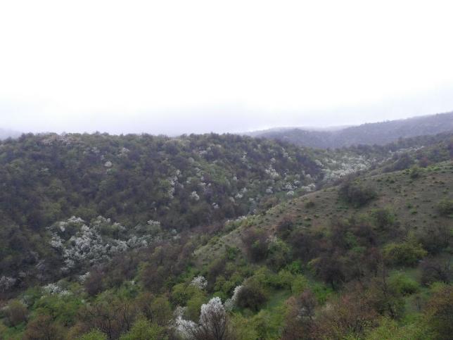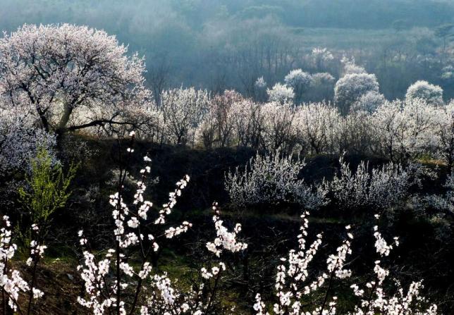 春天初绿的山腰沟谷之间,一树树一丛丛的粉色杏花蔓延开来,既有大气磅礴的场面,又有形单影只的妩媚。这些绝美图片的出处就是新疆伊犁杏花沟。明前后,山谷间常有薄雾缭绕,片片杏林在其间若隐若现,而花苞也静静地呼吸着春风,等待着春阳遍洒。春风徐来,空气中弥漫着青草香甜味,深深呼吸,感到五腑都被这香甜味填满了,净化了。