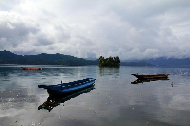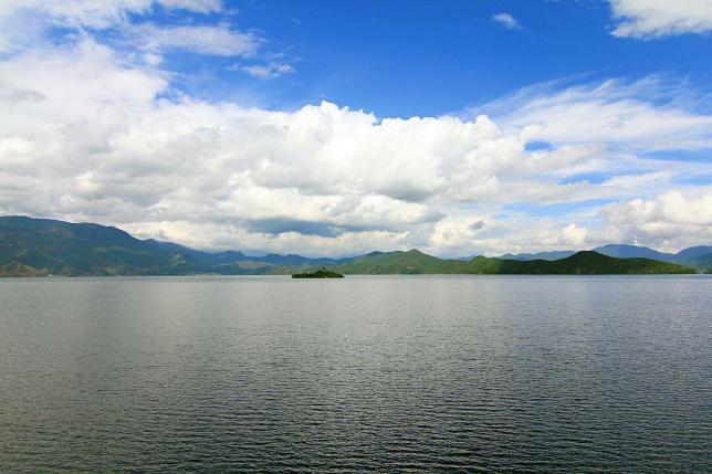 湖中各岛婷婷玉立,形态各异,林木葱郁,翠绿如画,身临其间,水天一色,清澈如镜,藻花点缀其间,缓缓滑行于碧波之上的猪槽船和徐徐飘浮于水天之间的摩梭民歌,使其更增添几分古朴、几分宁静,是一个远离嚣市,未被污染的处女湖。