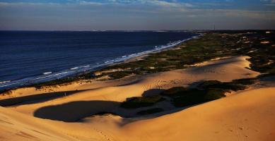 沽源草原距离天津约310公里。位于张家口东北180公里的沽源县境内,景区内现有遗存完整的树葬楼和大量辽、金、元三代帝王宫苑遗址。沿滦赤路到后城村,右侧便可看到巨大的“赤壁”。