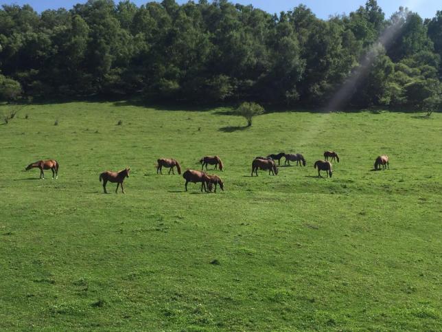 在神田草原上连绵起伏的99个山包形成了一道绝妙的风景,最大的草坪约有1000至2000亩。充沛的水量,高低起伏的地势,茂密的植被,花池高山……四周悬崖绝壁,茫茫原始森林遮天蔽日,这里有着不输若尔盖的美。