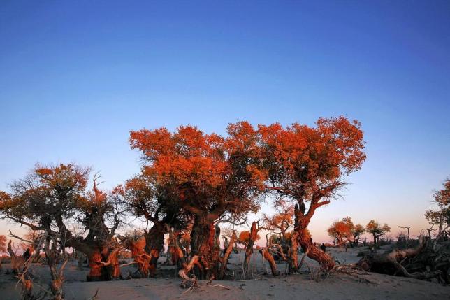 胡杨是树木中起源最早的类群,是植物的“活化石”,一棵胡杨的主根,可以穿越地层一百多米。 “生而不死一千年,死而不倒一千年,倒而不朽一千年”,这就是胡杨林的一生写照。 茂密的胡杨千奇百怪,神态万般,漫步在浓郁的胡杨林中,仿佛进入神话般的仙境。 千年不朽的胡杨枯木、震撼人心的生命景观和良好的光影条件,使这成为摄影爱好者的天堂。 景区地处干旱戈壁,全年游览都要做好防晒防风防沙准备,带好墨镜、头巾、润唇膏等物品。