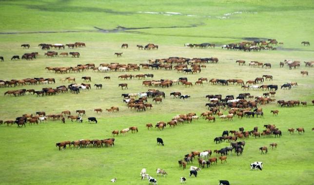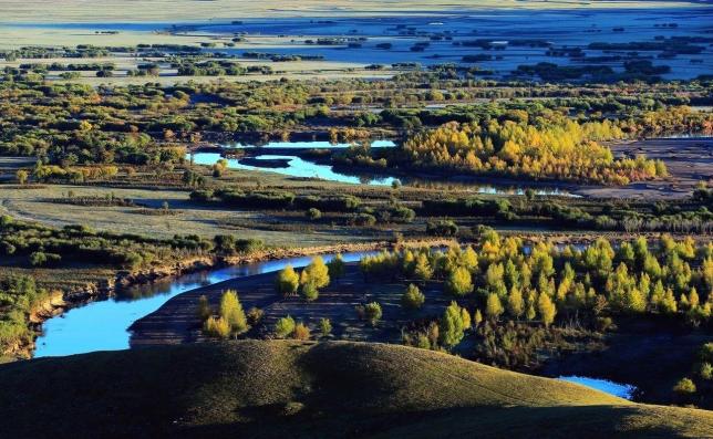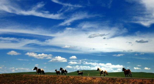 陈巴尔虎草原的莫尔格勒河,人称天下第一曲水。夏季两岸草浪滚滚,鲜花盛开,处处马嘶羊咩。最有趣的莫过于沿河岸散步,蒙古包就象飞落的大雁,到处都是牛、羊、马群,勾勒出童话般的世界。