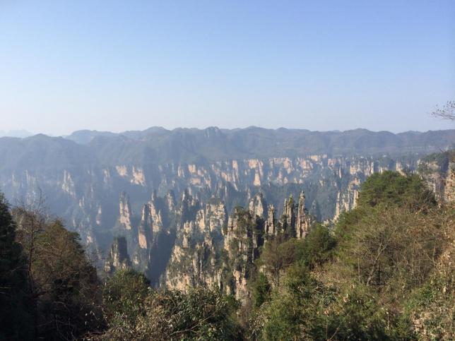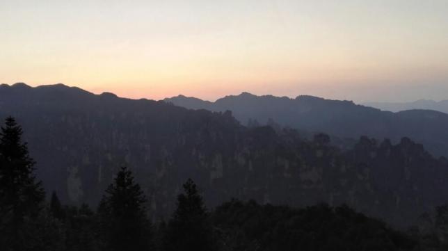 有着弥漫在山腰谷底的云雾,时而涌若滚滚波涛,时而又像飘若缕缕游丝。朝霞中的天子山呈现出金壁辉煌的样貌,远远看去似一幅油画;月光下的天子山又有着朦胧迷离的美感,像一幅幽静的山水图。