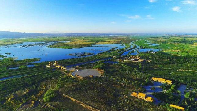 这里蓝天白云、飞鸟游鱼、碧水金沙、芦荡水漾,展现出一幅融江南水乡之秀色与塞北大漠之雄浑为一体的瑰丽画卷。