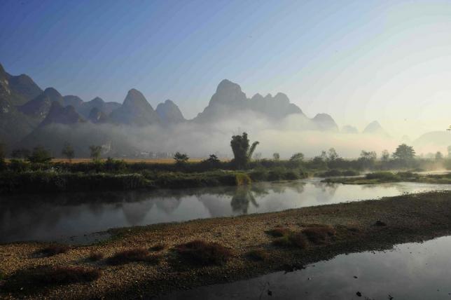 盘阳河一路逶迤,河水色如碧玉,宛若明镜,沿岸绿意盈盈。傍晚的盘阳河,渔舟轻荡,悠闲的白鹅,袅袅生起的炊烟,一派诗意的田园风光。自驾:巴马瑶族自治县城区行驶1.9公里,左转进入G323,然后沿G323行驶6.9公里,到达盘阳河。