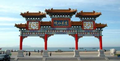 八仙过海景区位于蓬莱市北黄海之滨,与丹崖山、蓬莱阁、长岛隔海相望,景区三面环海,形如宝葫芦横卧在大海之上,景中有海,海中有景,点点渔帆与岸边景色相映成趣。八仙过海景区是神话传说中八仙过海的地方,千百年来,八仙过海的美丽传说,海市蜃楼的今古奇观,碧海蓝天的无限美景,秦皇汉武唐太宗来此求仙留下的神奇故事,吸引了无数海内外游客来此寻觅仙踪,拜仙祈福。