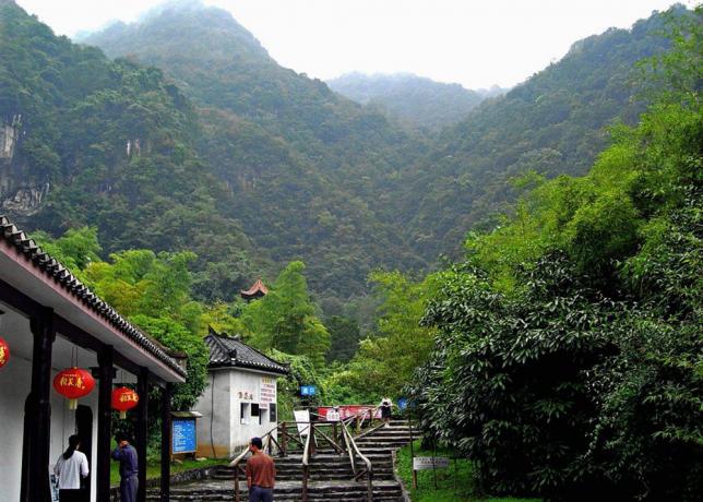 这里百川挂岩,千峰竞秀,万木争艳。九宫山既有江南有江南山峰的奇秀,又具塞北岭岳的雄伟,雄、奇、秀、险集于一身,被誉为九天仙山。