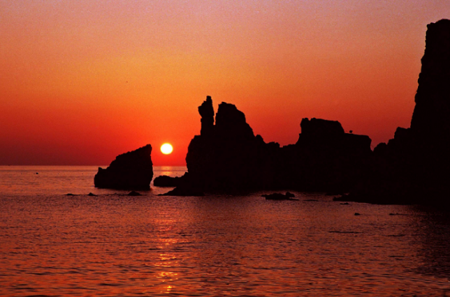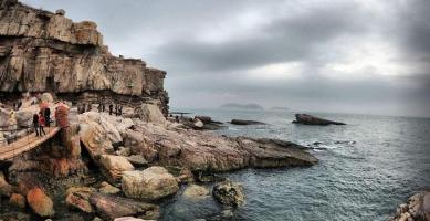 九丈崖景区位于北长山岛西北角,九丈崖紧邻月牙湾,是岛上又一处精华。那里的悬崖以陡峭和险峻而著称,与月牙湾有着不一样的精彩,也是看日落日出的好地方。九丈崖的九字是个约数,但见高耸入云的悬崖从海边拔地而起,那一个震撼了得!照片上看不出有多壮观,当你真正置身悬崖下边的时候,仰望绝壁万丈,就不得不感慨大自然的神奇造化了!大海中能有如此鬼斧神工的自然景观,在国内是没有第二个地方的。
