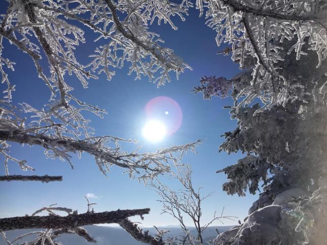 如果早晨起得比较早,可以去“簸箕崴子”景区游逛一下,这里可以欣赏到东北地区唯一的石林+雪景+雾凇奇特石林景观。在观景台极目远眺,虎峰岭周边山林一览无余,雪松雾凇尽收眼底,正所谓"须晴日,看红装素裹,分外妖娆"。欣赏完美景之后,一定要饱餐一顿。十点左右我们离开虎峰岭,前往“镜泊湖”。