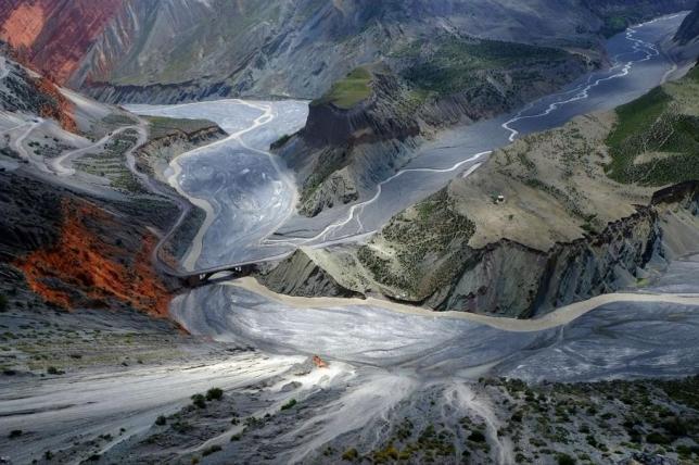 这是亿万年天山雪水自然冲刷深切的杰作,悬崖、绝谷、流水,壮美、阳刚、韵律、多彩。形似梯田的河流阶地与“缠绵悱”的辫状河流相依相伴,千转百回,刚柔相济,尽显侠骨柔情。
