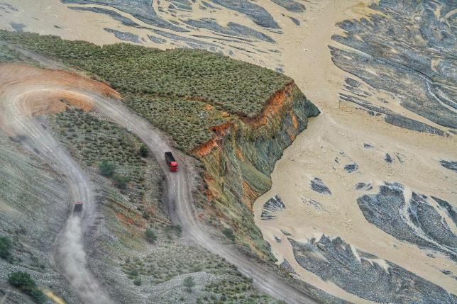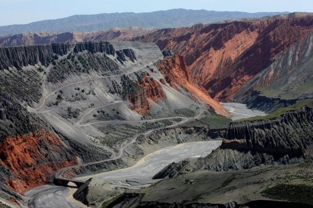 伫立峡谷面前,既有鬼斧神工的美丽画面感,又有灾难片的既视感,加之瞬息万变的光影的渲染,宛若一幅绚丽多彩的大地抽象画,宛若梵高画布中流淌出来的。有人说它堪称是“中国的科罗拉多大峡谷”,站立崖端边缘俯瞰,深不见底,直觉后背发凉,心跳加速。通向峡谷的那条折叠在崖体上的土路,是重要的交通运输线,也是极具美感的摄影元素。