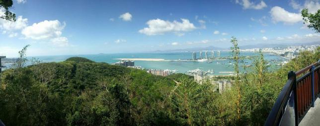 我们还去了鹿回头公园,这个公园有一个关于爱情的美丽的传说。在山顶,有一座非常高的石雕,一个鹿好像在回头看什么似的,旁边站着一个人也在向远方望去,像在盼望着什么。所以这个公园的名字就是由此而来的。而且,站在山顶上,我们还能看到整个三亚的全景,看到三亚海湾,很是壮观!其中有几幢房子很是特别,修得像几棵苹果树,我们一眼就看到大树房子了。山顶上的亭子里还摆放了两台大大的望远镜,投进五个一元的硬币,就可以观看了。我和弟弟都去看了看,但好像没看到好清楚,时间就到了。