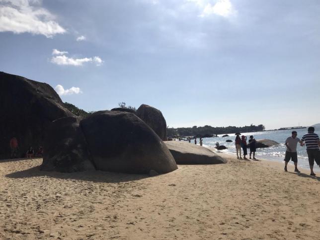 这大概是海南最美丽的风车海岸了,在落日之时漫步海滩,眺望风车的剪影,和洋洋洒洒的金色余晖拥抱,闭上双眼,感受海风拂面,一生也难得有如此心境了。和别处细软的海滩不同,鱼鳞洲的海滩就如同它的名字一般粗糙——这里的海滩布满小石子,光着脚走在其上会有些许的刺痛感。在鱼鳞洲的海滩上,18座巨大的风车迎风矗立,让这片土地俨然生出另外一种浪漫的情怀。