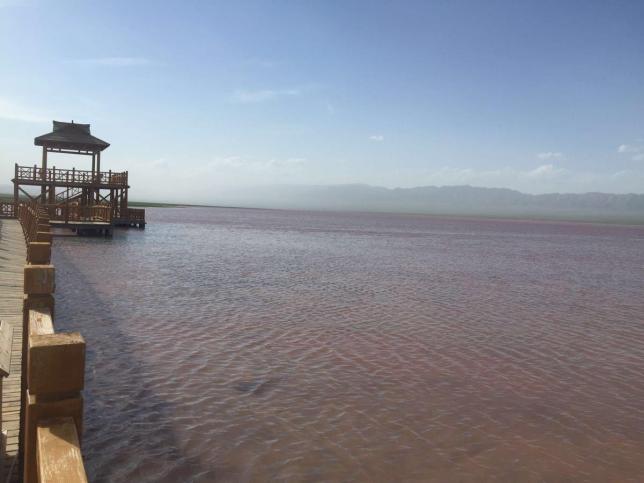 沿着这条新开通的高速行驶,就可以到达这样一个美得让人落泪的湖泊!晴朗时,如大海般碧蓝;起风时,湖面就呈现浪漫的粉色;而下雨时,则是紫色,日落时,绿里透红……真是太神奇了。