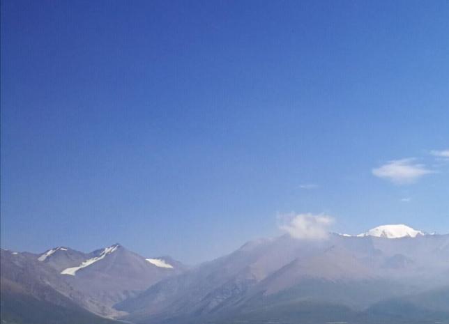 三座雪峰银光烁烁,远远望去,犹如浮在云天之上的水晶雕塑,令人不得不产生敬畏之心,这就是阿尼玛卿的神圣和神奇。