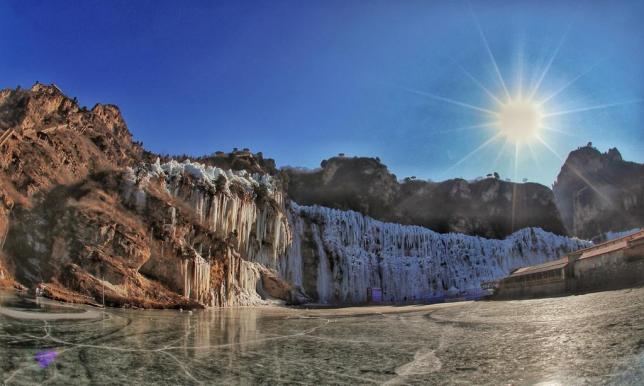 山间的低温,使得流水停驻,渐渐地渐渐地凝结成冰瀑,一层,两层,三层……层层叠加,晶莹透亮,在幽静的山谷中留下一道震撼的风光,天地浑然的纯净,让人尽情放空大脑和心灵。如果赶上幸运的早晨,你还能见到美丽的霜花,凝结在树上,如梦似幻。