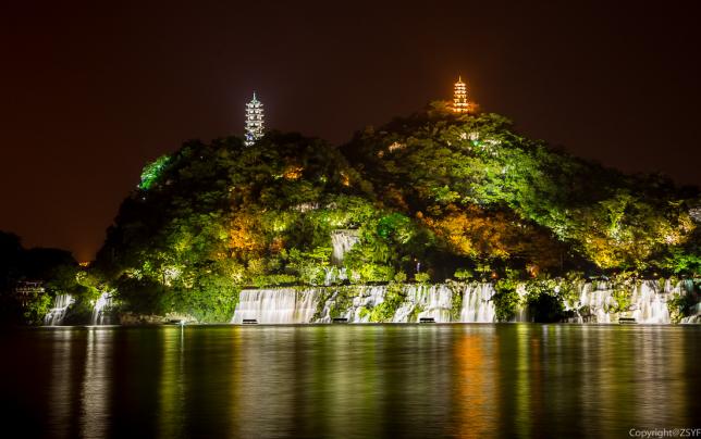 夜色下柳江的美虽然体现在柳州人文的五颜六色、五彩缤纷、各式各样霓虹灯下,但是它自然与人文的有机结合。柔柔的江风拂面,轻柔湿润又不腻。柳江两岸边有着名为“百里柳江、百里画廊”的霓虹美景,有装扮五颜六色灯光的树,有人工造就的潘龙山瀑布群,还有号称世界第一的最大型的水上音乐喷泉,有画一样的山,有美伦美幻的、各式各样的、霓虹闪烁的跨江大桥,还有被这七彩灯光映照下的粼粼江水,所有这些营造出一个如梦如幻的七彩世界……