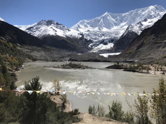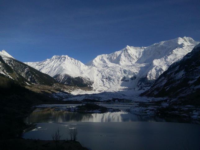 这里的冰川、湖泊、农田、村庄、森林融会在一起,汇集成一个多姿多彩的世界。桃花的粉色与纯净的白色相互映衬,更显得冰川晶莹剔透,仿若走进了动画冰雪奇缘中。