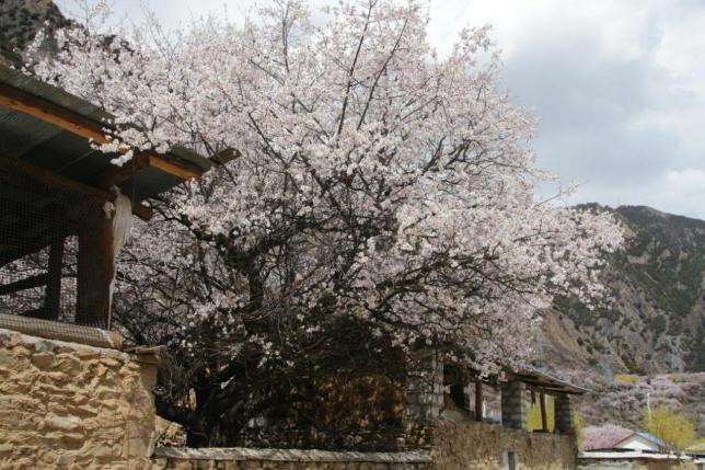 同时只要有人家的地方,房前屋后都会有桃花树。从桃花丛中望去,就能看见雪山。春色与冬景完美的结合,无处不是引人入胜的画面。