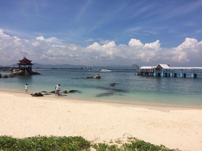 蜈支洲岛属于那种清一色珊瑚石的海岛。海浪一层层冲上海滩,雪白的浪花永远洗刷着雪白的珊瑚沙。黄昏时分,有一群美丽的来自海洋的小生灵在夕阳斜射的海滩上爬行和跳跃。在这里,无论观海、赏月、听涛,都有一种仙游于“世外蓬莱”的浪漫。