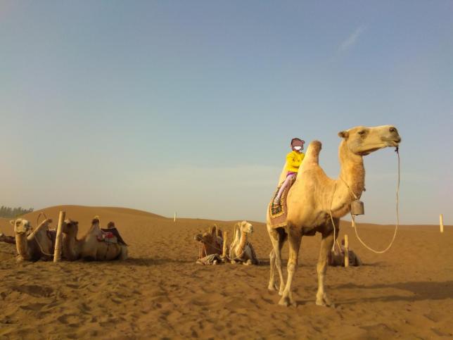 “有沙山的沙漠”是这里的一大独特景观。偶尔还能看到当地人带着骆驼队伍走过。