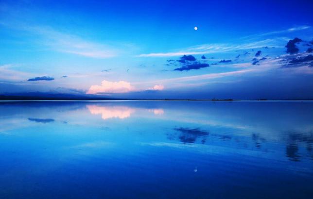 第三站是天空之境——青海茶卡盐湖。这里海拔3059米,是柴达木盆地有名的天然结晶盐湖。这是一个盐的世界,车上、地上,甚至空气里都有盐味,远处有挖盐船在挖盐。湖畔,小火车来往奔驰,盐砣似雪山般矗立,展示着盐湖的迷人风光和博大富有。阳光洒在湖面上,波光粼粼。天空倒映在湖面上,水天一色,美得让人窒息。