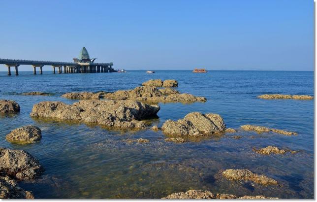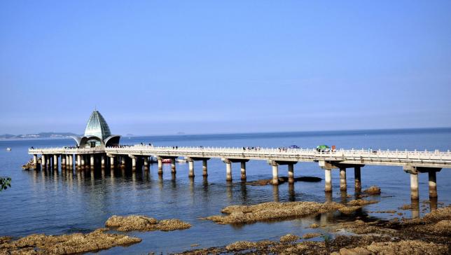 栈桥全长624米,宽10米,由引桥、游艇码头、栈桥主体、黄海明珠四部分组成,是目前我国最长的海上栈桥栈桥是一条沿伸到大海里的小桥,小桥的尽头是一个中国风格的望海亭。栈桥有种在水一方的江南少女风情。她就像远离尘世、不食人间烟火的仙子,静静的透出超尘脱俗的品质;没有雕梁画栋的大气;没有粉饰装点的绚丽;但却是淡淡的、幽幽的,像一位淡雅清纯的少女月色下的栈桥更是别有情致,海面上袅袅娜娜升起簿雾,淡淡的弥漫开来,栈桥像是披着白纱的新娘,羞涩的、恬恬的。