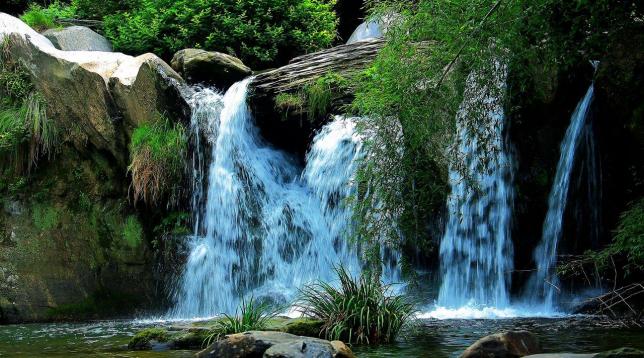 我们的双腿渐渐麻木了,但还是坚持了大约一个小时。此时两三只野生猴跳入我的视线,听着哗哗的瀑布声,我知道前方不久就是水帘洞了。而这里就是三元宫,三元宫雕梁画栋,富丽堂皇,正门前的那棵树显得很是古老。不久,我们便来到了水帘洞,《西游记》中水帘洞就是孙悟空的故居。洞前是一道小瀑布,水不停地流泻下来,哗哗的水声、呼呼作响的风声和喧闹的人群声形成了一首完美的奏鸣曲。洞里,五光十色的乱石点缀着道路,指引着人们向洞口走去。
