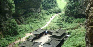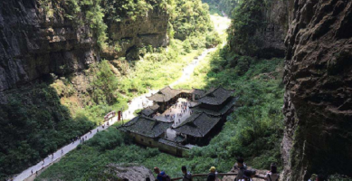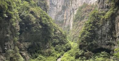 早上,我们来到了世界自然遗产的核心区,国家五A级景区的天生三桥。三座石桥怪石嶙峋、十分陡峭,中间还有一个巨大而漆黑的山洞,让我不禁感叹大自然的鬼斧神工!这三座石桥可不一般,平均高三百多米,桥面跨度均在500米以上,是世界上最大的天生桥群。