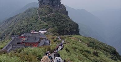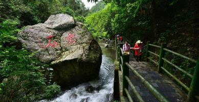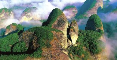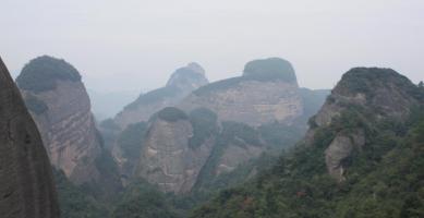 崀山的八角寨最出名,因为从山上看下面的八座小山的峰顶就像八个羊角,所以取名八角寨。我们到了崀山的头一站就是直奔八角寨,八角寨的山高果然名不虚传,我们费了九年二虎之力才登上了山顶,途中,虽然很累,腿脚发麻,但是沿途能欣赏到各种美景,一切的疲倦都化为乌有,山间五颜六色的野花朝着我们绽开了笑脸,招手欢迎远方客人的到来;绿树挺直腰板一动不动地站在山头,凝视着爬山人们的一举一动;小虫,小鱼、小虾在小溪里跳起了欢快的圆舞曲,此情此景,真是美仑美奂!