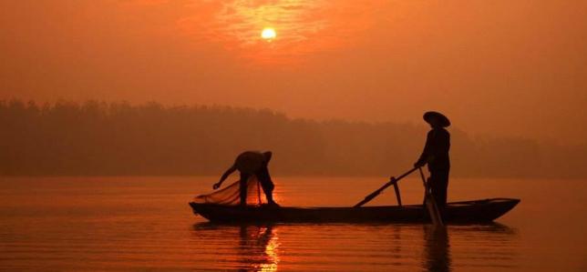 经过御茶园,就可以看到浩瀚的洞庭湖了。一块巨石矗立在地上,上面刻着“天下第九福地”的字样。瞭望洞庭,可真是“天接水,水连天”、“予观巴陵胜状,在洞庭一湖。衔远山,吞长江,浩浩汤汤,横无际涯;朝晖夕阳,气象万千”啊!
