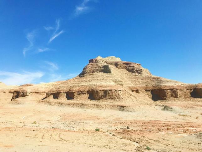 四周被众多奇形怪状的土丘所包围,高的有四层楼般高,土丘侧壁陡立,从侧壁断面上可以清楚地看出沉积的原理,脚下全都是干裂的黄土,黄土上面寸草不生,四周一片死寂。