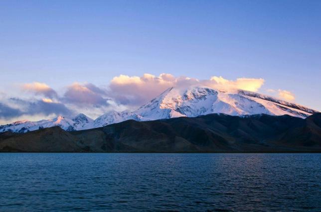 从南疆最大城市喀什出发向位于中国与巴基斯坦边境的红旗拉普开车,一路上看不尽雪山草原美景。不觉已是海拔3000多米了,再看旁边一座巨大的冰川雪山,就是被称为“冰川之父”的慕士塔格峰了,像奶油蛋糕般。慕士塔格峰与海拔8611米的世界第二高峰乔戈里峰遥相对望。