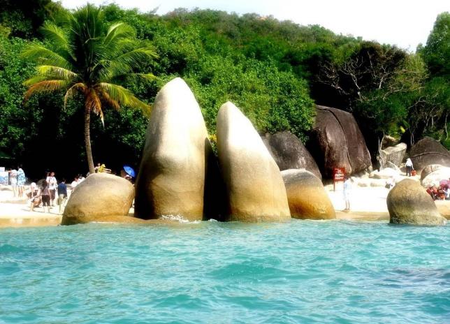 大东海是海南颇具规模的热带海滨旅游度假区。位于距三亚市区3千米的兔子尾的鹿回头两山头之间。这里月牙形的海湾,辽阔的海面,沙滩平缓,沙滩上椰树婆娑,金沙融融,海面晶莹如镜,波光粼粼。阳关和煦,冬季水温在18℃~22℃,是冬季避寒胜地、度假休闲者进行潜海观光、海水浴,阳关浴、露营的理想之地。