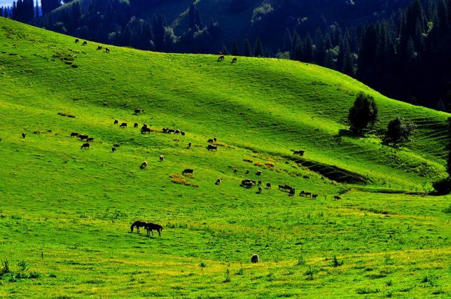今天开始,我们将告别南疆的大漠戈壁,进入有着塞外江南之称的北疆--伊犁。沿途风光会让人有不停按下快门的冲动,我们翻越风景如画的中天山秀美林场---巩乃斯,巩乃斯四季景色俱佳,山地草原,河谷草原并存,夹杂着初绽的花朵,整个画面如同一首田园牧歌。